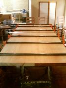 接ぎ合わせて一晩たったら、表面を手かんなで仕上げます。