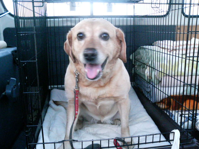 今回は仕入れの相棒に「サンちゃん」(ラブラドール、メス5歳)も連れていった。