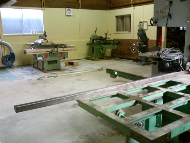 朝から息子さんと二人でユニックで現れる。工房の中は結構散らかっていて機械を搬出するのに手間取るかと思ったけど、その息子さんが手際よく外に運び出す。一台ずつジャッキで上げてコロをかませたり、なんだりしながら工房のそとまで引っぱり出す。出たところでユニックで車に積み込む。