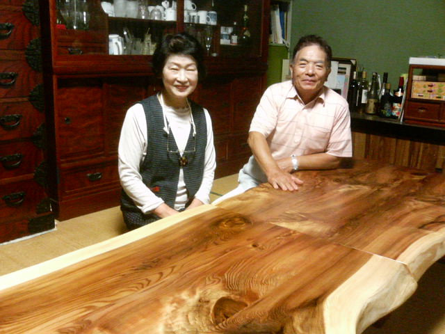 以前、居酒屋さんに作った座卓を見た近所のお客さまが「同じものを作って欲しい。」とのご注文を頂いた。そのお客さまはご自分で材木屋さんから板を手配され、加工をお願いされたのだ。