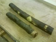結局少し皮が残る部分もあったけど、泣く泣く納める。(写真は残った材料。こんなんから削っていくのです)